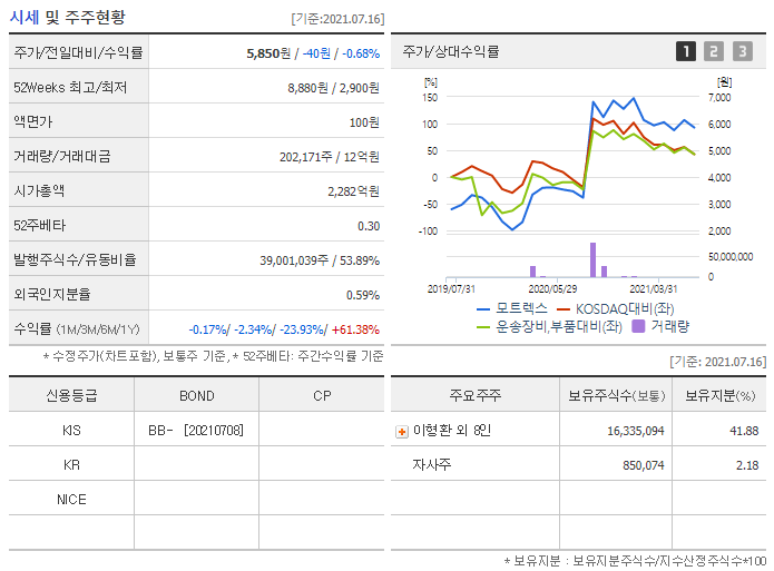● 라닉스 주가포인트 자율주행 관련주인 모토렉스주식