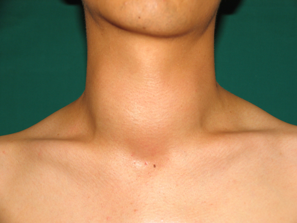 - 특별한 증상 없이 지내는 경우가 많다 2) 눈으로 보았을 때 목 아랫부분에 돌출된 결절, 혹이 관찰될 수 있다 3) 삼킬 때 목 안에 이어지는 이물감과 삼키기 어려운 연하장애 4) 호흡이 곤란 발생 5) 손으로 만졌을 때 경직된 혹이 만져진다 6) 목이 마르는 증상 7) 잦은 기침 8) 목구멍의 답답함