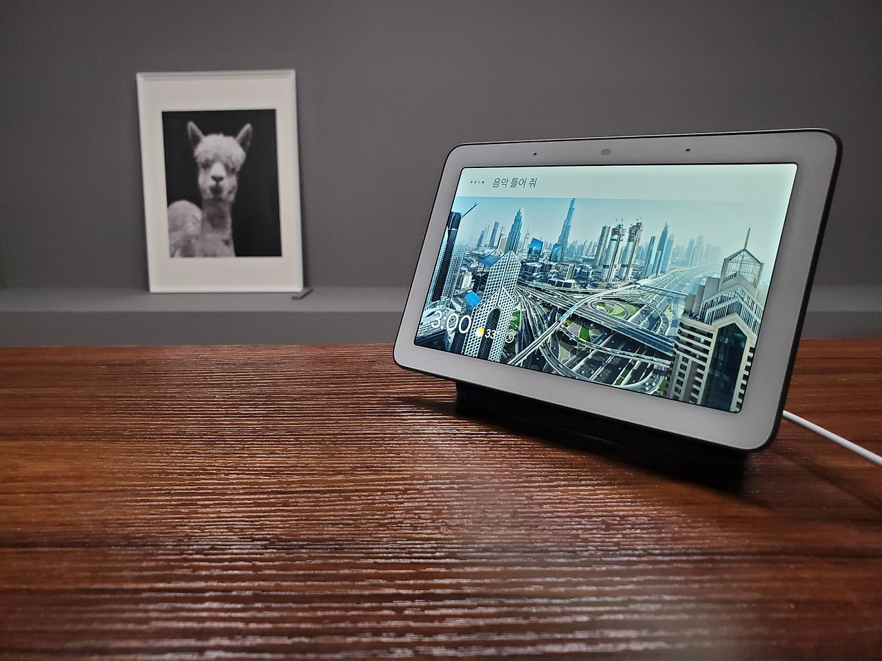 연동 가능한 스트리밍 서비스로는 유튜브뮤직, 지니뮤직, 플로, 벅스뮤직, 넷플릭스, 웨이브, 스포티파이 등과 같이 국내에서 많은 사용자가 사용하고 있는 서비스와 연동이 가능해 상당히 익숙하게 사용할 수 있다.뿐만 아니라 홈 IoT 제품과 연동 서비스 지원, LG전자, 코웨이, 한샘, 샤오미, 치프360, 레노버, 필립스 등 다양한 글로벌 IoT 스마트 제품 제어 및 음성 명령 지원이 가능하며 국내 또는 해외에서 구매한 여러 제품 간 호환성도 높은 만족도를 제공한다.앱 연동 후 간단한 사용법에 대한 소개가 끝나면 사용이 가능하다. 구글홈에도 구글 네스트가 연결된 것을 확인할 수 있으며 앞서 소개한 것처럼 다양한 IoT 제품을 추가로 연결할 수 있다. 조명, 에어컨과 공기청정기 등 구글 홈 앱을 통해 통합 연동이 가능하다는 점.디스플레이는 현재 시각과 날씨와 함께 배경화면이 수시로 바뀌게 되며 배경화면은 구글이 제공하는 프리셋 또는 구글 포토에 업로드한 사진을 슬라이드 쇼로 만들 수도 있다. 물론 터치를 통해 볼륨, 밝기, 설정 등 간단한 조작은 가능하지만 대체적인 컨트롤은 기본적으로 음성으로 이뤄진다고 봐도 무방하다.구글의 음성비서 어시스턴트는 꾸준한 학습과 머신러닝 보정을 통해 실시간으로 개선되고 있다. 새로운 무언가는 없지만 ‘OK 구글’ 혹은 ‘헤이 구글’을 통해 요청하는 음성명령 인식도는 매우 높다. 스마트폰에서 사용하듯 실시간 통역도 가능하고, 이 훌륭한 음성 명령과 피드백은 결국 자연스럽게 ‘OK 구글’을 찾게 해준다.기본 명령 기능은 일반 AI 스피커와 큰 차이가 없다. 구글 어시스턴트를 불러 날씨를 묻거나 간단한 정보를 검색하거나 음악을 듣거나 타이머를 맞추는 것도 가능하며 저녁에 먹을 레시피를 찾는 등 다양한 것이 있다. 가장 큰 차별점은 7인치 터치스크린을 지원한다는 점이다.1024×600 해상도의 구글 네스트 허브는 7인치 태블릿처럼 깨끗한 화면으로 유튜브 감상과 음악 감상을 위한 최고의 선택이 아닐까 싶을 정도다. 물론 기본 디스플레이를 통해 디지털 시계나 디지털 액자와 같은 활용성도 갖췄다.단순히 날씨를 알려달라는 요청에도 음성으로 오늘의 최저, 최고 기온, 강수량을 알려주는 것과 달리 눈으로 보는 시각적 정보를 통해 보다 효과적으로 정보를 전달받을 수 있다.가끔 추억에 잠길 때가 있어. 내가 여행에서 찍은 가족사진과 음식사진 등 그런 것을 보고 싶을 때도 스마트폰을 알아볼 필요 없이 연동된 구글포토를 통해 ~로 찍은 사진을 보여달라고 하면 자동으로 찍은 사진을 보여준다. 이 사진을 바로 누군가에게 공유하는 것도 가능하다.대체로 조용한 환경에서 작업을 진행하는 편인데 머릿속에 갑자기 듣고 싶은 음악이 떠오를 때도 있다. 그럴 때는 음악을 틀어달라는 요청으로 노래와 비디오를 선명한 디스플레이로 즐길 수도 있다. 뿐만 아니라 스포츠나 레시피에 대한 정보도 유튜브를 통해 보고 따라하는 것도 가능하다. 예를 들어 요가 자세를 따라하고 싶다면 유튜브 요가 영상을 보고 따라하는 것도 가능하다.스마트폰으로 유튜브 앱을 켜고 원하는 영상을 선택하는 것과 비교하면 조금 느릴 수 있다. 음성으로 말하고 인식된 언어를 통해서 검색이 이루어지고 재생이 되니까. 하지만 내가 타이핑을 하거나 요리를 할 때, 무언가를 가지고 있을 때 음성으로 쉽게 원하는 기능, 콘텐츠를 사용할 수 있다는 점은 오직 이러한 인공지능 스피커만으로 경험할 수 있는 매력 포인트가 아닐까 생각한다.음성인식 기능을 사용하기 위해서는 음성명령 인식률이 좋아야 한다. 뭐든 기본이 돼야 손이 가서 쓰고 싶은 거. 스피커로서의 사운드도 꽤 훌륭하다. 유튜브 플레이어로서의 화질도 훌륭하고. 태블릿이나 스마트폰을 가지고 원하는 위치에 높지 않더라도 그대로 제자리를 지키며 사용할 수 있다는 점은 콘텐츠 소비를 좋아하는 2030에게도 상당히 매력적인 제품이 아닐까 싶다.최근 가장 만족도가 높게 활용되고 있는 맞춤형 루틴 기능은 아침 일과 및 저녁 일과에 대한 루틴을 설정해 알람을 설정하고 맞춤형 이벤트, 날씨 등을 확인할 수 있다. 기본적으로 아침에는 개인 맞춤 이벤트, 날씨, 전날 뉴스 등을 알리고 저녁에는 알람을 설정해 불을 끄는 등의 작업이 이뤄진다.구글 어시스턴트 내장을 통해 핸즈프리로 한눈에 편하게 원하는 기능을 불러일으키는 인공지능 AI 스피커 ‘구글 네스트 허브’. 단순히 레시피 찾기, 날씨 검색, 알람 설정 등 음성 명령 기능뿐만 아니라 7인치 디스플레이를 통해 영상, 사진 등 더 많은 정보를 볼 수 있게 해주는 만큼 꽤 독특한 제품이었지만 넷플릭스나 유튜브 등 콘텐츠 시청이 빈번하고 사용하기 쉬운 스피커를 찾는다면 한 번 생각해보는 건 어떨까.구글 네스트허브 인공지능 AI 블루투스 스피커 7인치 터치디스플레이 유튜브 음성제어 국내 정품 국내AS: 시넥스스토어 [시넥스스토어] 안녕하세요 시넥스스토어에 오신 것을 환영합니다. smartstore.naver.com구글 네스트허브 인공지능 AI 블루투스 스피커 7인치 터치디스플레이 유튜브 음성제어 국내 정품 국내AS: 시넥스스토어 [시넥스스토어] 안녕하