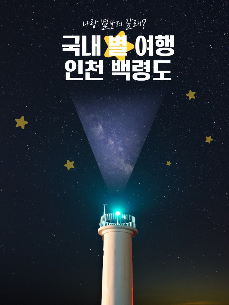 여행은 인천이잖아요, 오늘 소개해드릴 내용은 밤하늘의 별을 보러가는 ‘국내 섬 여행’입니다!밤에도 밝은 빛이 가득한 도시와 달리 상대적으로 빛이 적은 섬에 가면 쏟아지는 듯한 별 풍경이 놀랍습니다.인천의 섬 백령도 별과 은하수를 볼 수 있는 대표적인 국내 섬으로 알려져 있습니다.낮에는 푸른 자연을, 밤에는 은하수와 별까지 모두 볼 수 있는 백령도 여행 바로 소개합니다!여행지 방문시 반드시 방역수칙을 준수하여 주시기 바랍니다.:) 백령도 낮과 밤 모두 아름다운 국내 섬 여행
