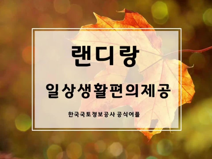 안녕하세요~ 오늘은 제 주변 생활 속에서 유용한 앱을 소개해보겠습니다~ 바로 국민의 편의와 안전을 생각해서 한국국토정보공사에서 만든 랜디런 앱입니다.