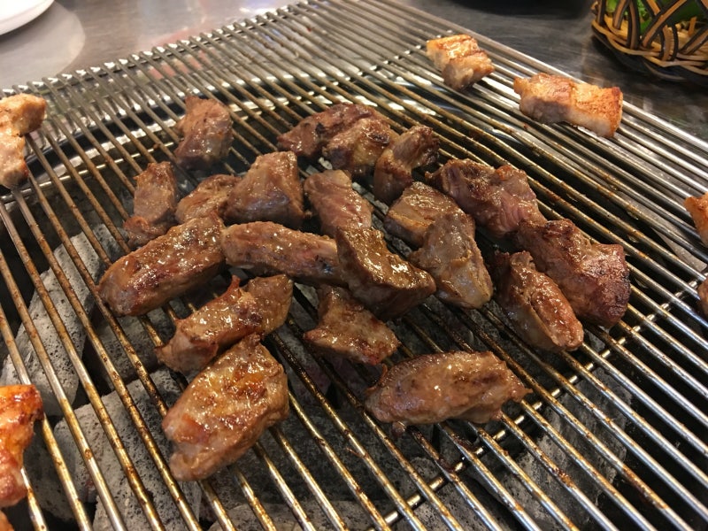근처에 산업단지가 있어서 그런지 생각보다 업체 회식 장소 느낌이 들어서 가끔 연인, 친구들끼리 식사하러 오는 경우도 있었나 보네요. 분위기는 떠들썩한 #포장마차 느낌이에요. 뭔가 저번에 방문했던 비상동 #기차도 삼겹살이랑 느낌이 비슷했던 것 같아요.:)[대구/기차도 삼겹살] 두툼한 돼지고기육즙 가득한 철도숯구이, 비산동맛집, 대구기차도삼겹살, 대구삼겹살맛집, 삼겹살돼지고기살림부위메뉴시세, 대구맛집추천 #오물오물 #맛집탐구생활 #대구맛집추천 #별점매일16:30-23:30 매주 월요정휴일 대구인이라면모두안…m.blog.naver.com[대구/기차도 삼겹살] 두툼한 돼지고기육즙 가득한 철도숯구이, 비산동맛집, 대구기차도삼겹살, 대구삼겹살맛집, 삼겹살돼지고기살림부위메뉴시세, 대구맛집추천 #오물오물 #맛집탐구생활 #대구맛집추천 #별점매일16:30-23:30 매주 월요정휴일 대구인이라면모두안…m.blog.naver.com[대구/기차도 삼겹살] 두툼한 돼지고기육즙 가득한 철도숯구이, 비산동맛집, 대구기차도삼겹살, 대구삼겹살맛집, 삼겹살돼지고기살림부위메뉴시세, 대구맛집추천 #오물오물 #맛집탐구생활 #대구맛집추천 #별점매일16:30-23:30 매주 월요정휴일 대구인이라면모두안…m.blog.naver.com기다리다 보면 각종 반찬이 나오는데 가장 주가 되는 반찬은 #콩나물무침과 #양파절임입니다. 2개 섞어서 나중에 나오는 갈매기살이랑 같이 먹으면 아주 좋은 조합이에요. 나중에 말씀드리겠지만 둘이 어울리는 이유가 분명히 있습니다.:) 야외에서는 직원분들이 숯을 만드시고 그 숯으로 갈매기살을 구워먹는 방식입니다!삼겹살의 기름기 없는 부위#갈매기 고기는 돼지의 횡격막과 간 사이에 있는 고기입니다. 실제로 실물을 본 적은 없었지만, 그 비주얼이 매우 충격적이었어요. 정말 막 같은 걸로 싸여 있는 상태로 나오거든요. 대부분의 갈매기들은 손질이 잘 되고 잘게 잘린 모습만 봐서 그런지 #와일드한 모습에 감탄합니다.:)금방 숯이 나오고 맛이 너무 궁금해서 바로 올려서 구워봤어요. 조금 설레는 마음으로 굽는데 날것으로는 길었는데 막상 구우니 조금 줄었어요.:) 오히려 통구이라서 그런지 굽기 쉬웠던 것 같아요.숯이라 그런지 은은하게 구워지는 게 별로 타지 않아서 다행이에요. 불향도 살짝 내는게 맛도 좋았나봐요:)통째로 구운 후 잘게 썰어 세로로 올려 다시 구웠습니다. 여기저기 잘 뒤집으면서 시간을 두고 구워야 잘 익을 것 같아요. 종업원이 구워주는 삼겹살집과는 달리 직접 굽는 방식이라 조금 번거로울 수 있지만 워낙 바쁜 곳이라 어쩔 수 없을 것 같습니다.다 익힌 다음에 기본 소스에 찍어 먹어봤는데 음… 맛이 뭐랄까? 삼겹살보다 갈매기살 특유의 조금 진한 돼지향이 납니다. 어쩌면 이런 맛에 호불호가 갈릴수도 있겠지만 그 #쫀쫀한 식감만큼은 정말 최고에요!! 돼지고기의 어느 부위에서도 느낄 수 없는 쫄깃함이 너무 마음에 들었습니다. 그리고 이 집에는 삼겹살도 있고 목살도 있으니 참고해주세요.:)마늘을 작은 접시에 올려 굽는 방식이 타지 않아 고기와 함께 먹기도 편했고 상추도 그렇게 크지 않아 한입에 싸서 먹기도 편했습니다.:) 특히 아까 말씀드린 콩나물과 양파무침과 이 갈매기살 조합이 최고입니다. 고시감 + 아삭아삭함이 환상입니다!!먹다가 너무 맛있어서 #추가반판을 더 주문했어요.거창하게 주문했는데 이건 뭐 2줄정도인줄 알았는데 3줄이나 나왔어요. 반시합이 아니라 한번 더 시킨 기분이었어요 :)위에 보이는 일행은 결국 먹지 못했어요. 실제로 한 번에 500그램이라 성인 남성 2인 기준으로 한 번에 추가 반반이면 충분할 것 같아요. 물론 식사는 따로 먹는다는 전제입니다. (웃음)석판 해물 된장#뚝배기의자와 인 #석판해물라면을 안먹을수가 없어서 배부르긴 했지만 주문했어요!! 7000원 치고는 양이 상당합니다. 특히 라면 사리 1500원을 추가했더니 성인 2인이 먹기 딱 좋은 사이즈가 나왔어요!! 국물을 찾는데 작은 게 문어 새우가 들어가있어 생각보다 구성이 아주 충실한 해물라면입니다:)이것은 과식을 초래하는 맛입니다:) 갈매기살만 먹지 말고 이 돌판 해물라면도 잊지 말고 드셔보세요. 아, 그전에 양조절에 꼭 성공하셔서 둘다 맛있게 드시는 것을 추천드려요.:)날이 저물어 사람이 너무 많아졌어요. 웨이팅 하시는 분들도 계시고 밖에서 잠깐 담배 피우는 분들도 계시고 뭔가 하루 쌓인 피로를 소소하게 풀어주는 사람들의 행복한 모습이 보이는 그런 가게였어요:) 잘 풀리지 않는 일들이 있어서 스트레스 받았을 때 친구들과 여기서 갈매기살과 소주로 마음을 달래기 정말 좋을 것 같아요.:) 냐무냐무이를 추천합니다!! 이상 #대구삼겹살맛집 뚝방삼지창탐구생활이었습니다.:D뚝방쌈지창 : 네이버 방문자 리뷰 250 블로그 리뷰 195m.place. naver.com뚝방쌈지창 : 네이버 방문자 리뷰 250 블로그 리뷰 195m.place. naver.com
