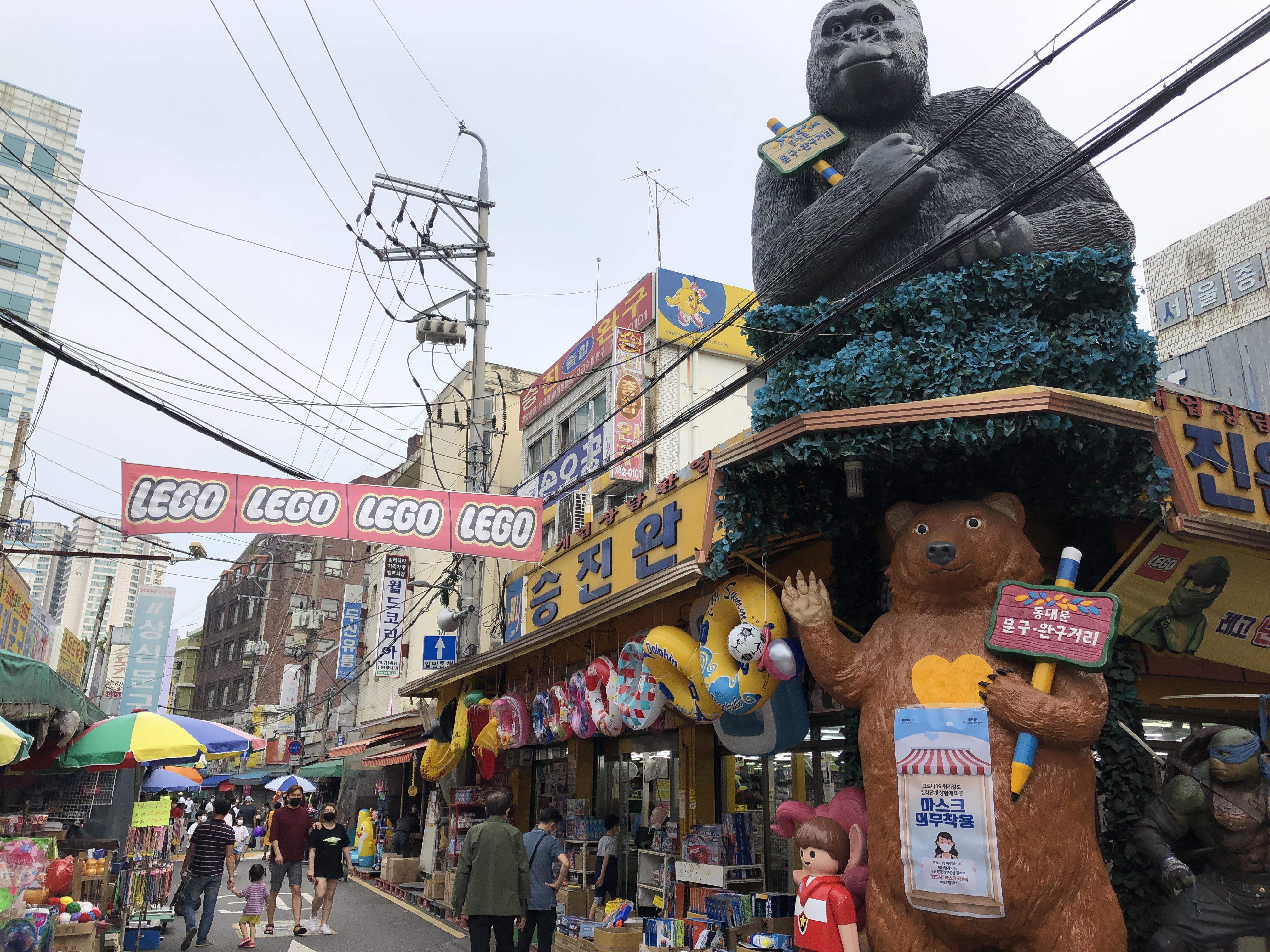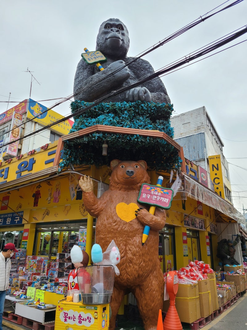 승진완구 나와서 다시 시장 구경해봅시다.매장 곳곳에 장난감이 사람들의 눈길을 끕니다. 저기 실수로 눈이 팔리면 가게에 들어가요.(웃음)