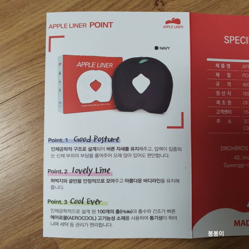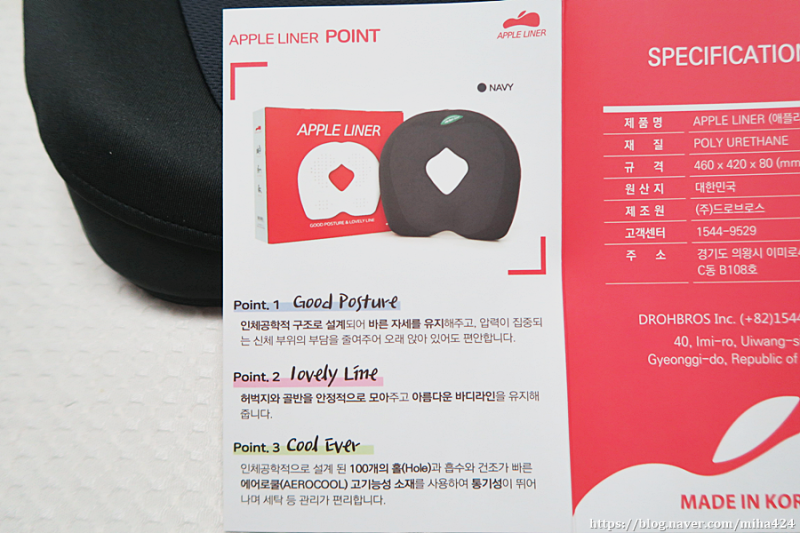 바디라인을 편안하게 감싸주는 인체공학적 디자인의가 직접 만들어 설계한 기능성 방석 씨가드 애플라이너입니다.