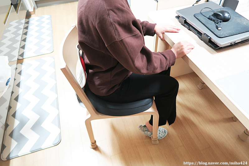 지금까지는 의자 방석 없이 임신했을 때 사용한 임산부 방석을 사용했습니다.의자에 다리를 올리고 자세가 어긋나고 저렇게 터지는 거예요.