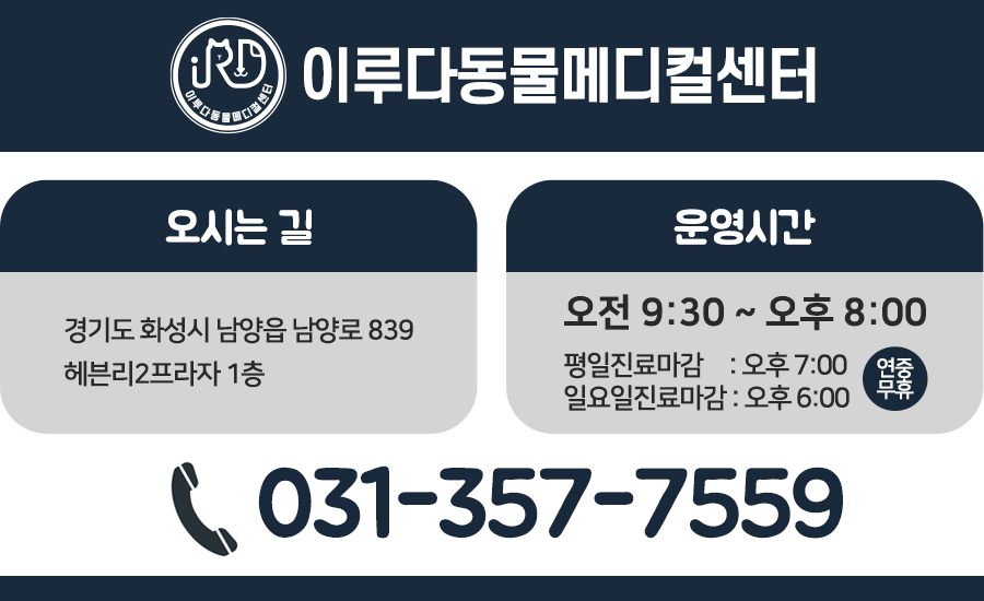 부0은 수술을 마치고 항생제 투여와 수액 처치로 통증을 덜어주었습니다 수액처치 후 입원실로 옮겨진 ㅂㅇ는 건강하게 회복되어 밥도 먹고 활발하게 움직였습니다. 또한 ㅂㅇ의 장염을 치료하기 위해 약물치료를 하였고, 이후 보호자와 함께 건강한 모습으로 퇴원하였습니다.오늘은 반려견의 자궁 축농증과 자궁 수종 수술에 대해 조사를 했습니다. 개의 생식기 질환은 다양한 증상을 볼 수 있습니다. 보호자는 반려견의 건강에 이상이 발견되면 인근 동물병원 또는 이루다동물병원에서 진찰을 받아야 합니다. 본원은 연중무휴로 진료하며, 궁금하신 사항은 하단의 진료안내를 참조하시어 연락주세요! 감사합니다