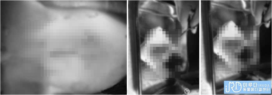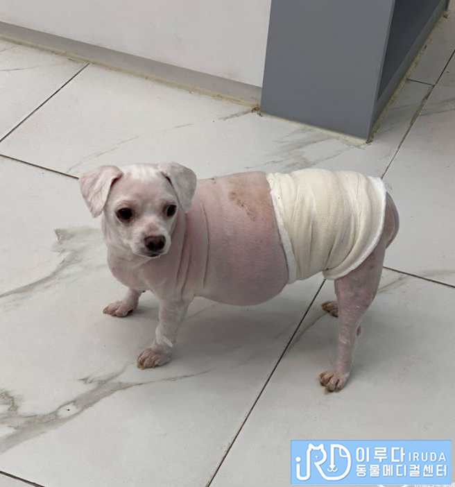 가정에서 ㅂㅇ는 식욕이 끊어지는 증상이 있어 피가 섞인 혈변을 봤다고 합니다. 진찰에서 본 결과, 전신 탈모가 진행 중이라 배의 붓기를 확인할 수 있었습니다. 또한 엉덩이 부분에 악취를 동반한 혈변이 묻어 있었던 것입니다.건강진단 심장사상충 및 코로나장염검사