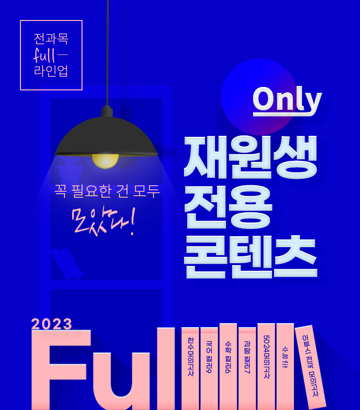 <수능FIT> : 최신 출제 경향을 반영한 6평, 9평, 수능 준비용 전과목 풀세트 모의고사 *수능은 실전이다! <이투스 전국 모의고사> – 자신의 전국적인 위치와 약점 파악에 맞춘 입시 전략을 가능하게 하는 모의고사 *수능용지와 크기, 용지, 글씨체까지 동일한 구성으로 실전 감각 배양! <Weekly Hyper> : 매일 아침 반복 훈련으로 수능 출제 패턴을 체화 실전 감각 유지 데일리 콘텐츠 *국가수영탐전과목 구성! *과목별 학습 밸런스 유지!