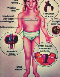 터너 증후군의 가장 중요한 특징은 다음과 같다. 단신-평균 성인 키는 143cm(4’8인치) 불임-난소가 발달하지 않아 발생 선천성 심장 결함-약 50%의 영향을 받은 여성에게서 공간 인식 문제-수학과 같은 과제에 대한 문제 생리 부전(아미노루아) 청각 장애보다 중요한 기능에는 다음이 포함된다.유두가 넓은 움푹 패인 넓은 흉수의 여분의 피부(피부)에 부풀어 오른 팔다리 팔꿈치 관절을 펴지 못하고 착색된 두더지 손톱.낮은 머리의 칼
