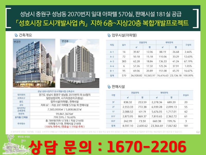 사업지의 구체적인 위치는 성남시 중원구 성남동 2020번지 일대로 대형 규모로 부지 면적이 무려 5348㎡가 됩니다. 일반 상업지역과 시장지역으로 강력한 인프라와 수요를 갖춘 지역입니다.