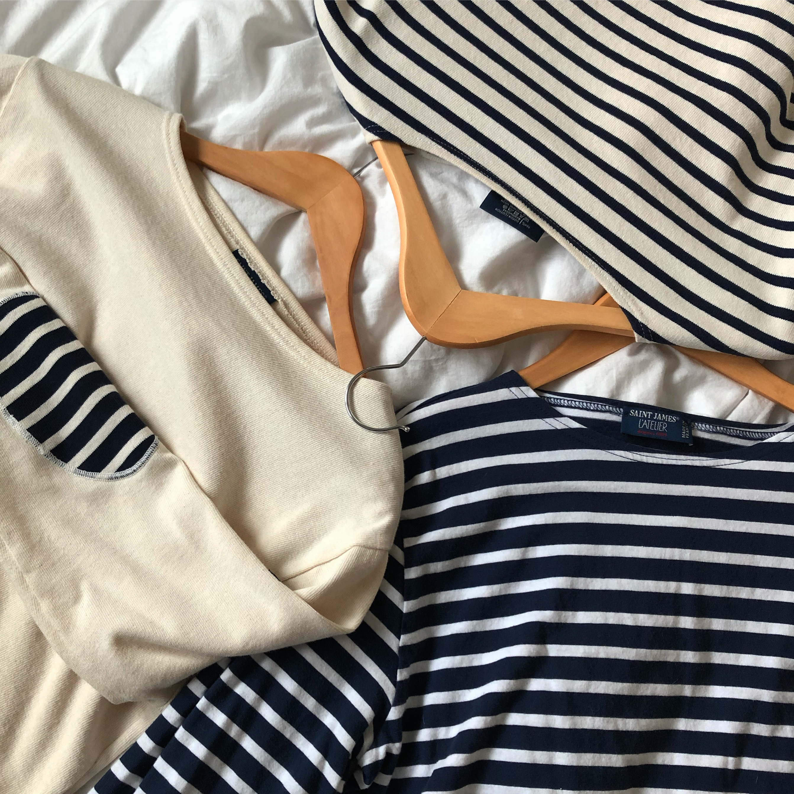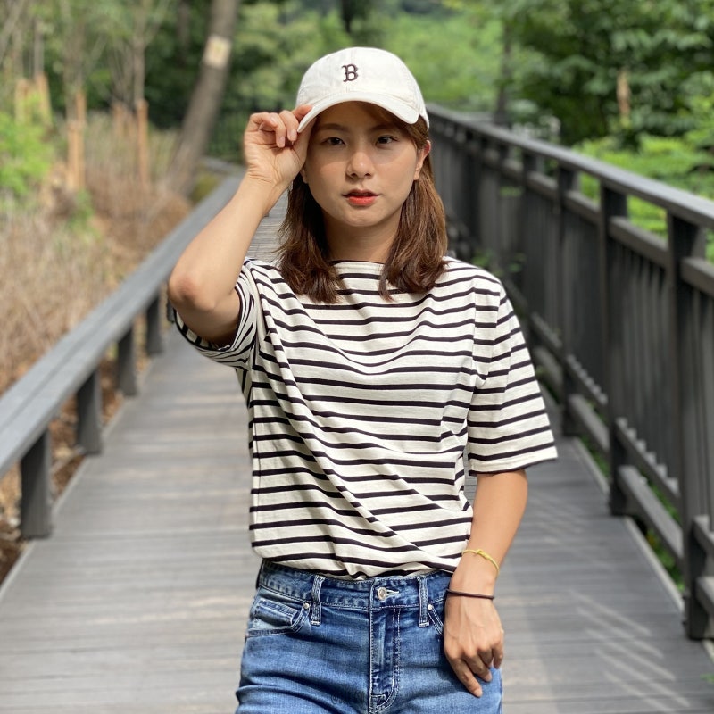 一番気に入ったセントジェームズSaintJames女性半袖Tシャツはヨルバン18商品です! 基本ラウンドネックのデザインにストライプTシャツなので、いつ、どこで、どのように着ても活用度が高くていいです 🙂