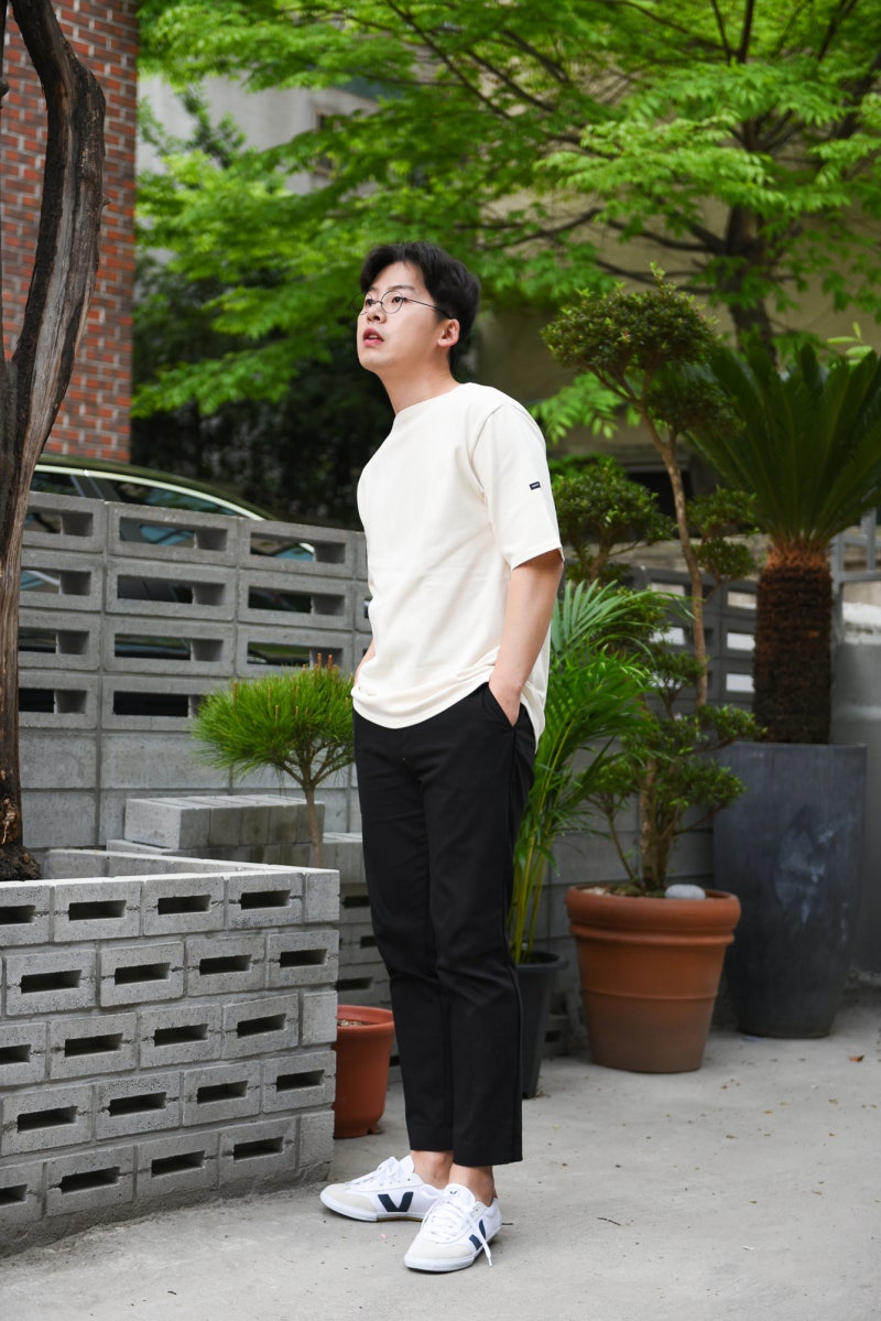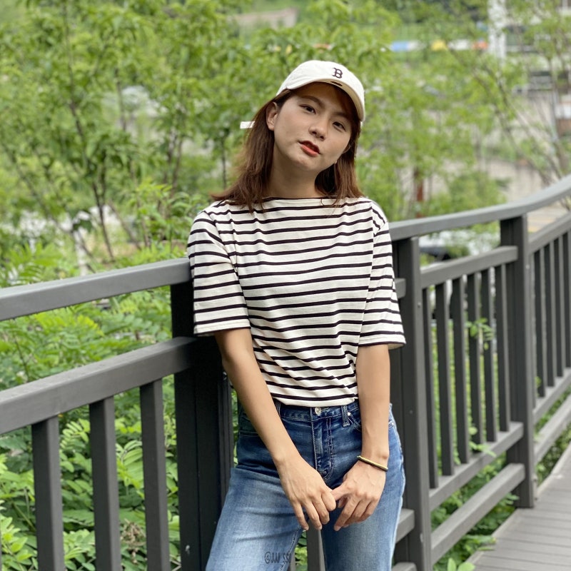 팔 윗부분을 충분히 감싸주어 체형을 조절할 수 있는 보트넥 티셔츠라 편하게 입으실 수 있을 것 같아서요. 🙂