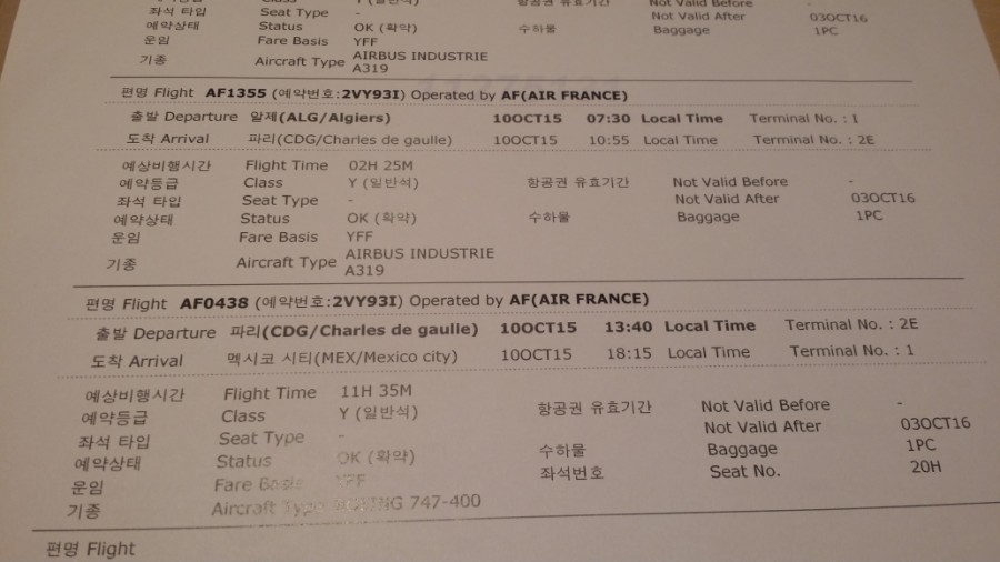 알제리 공항 앞에서 찰칵알제리에서 파리-멕시코시티를 거쳐 과테말라로 가게 됩니다.
