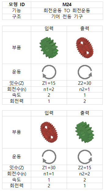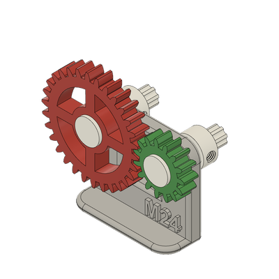 이번에 공유할 M24 스파 기어 모델은 스플라인 버전으로 2개의 스파 기어를 그레이 프레임에 조립하기 위해 스플라인 샤프트와 스플라인 구멍을 가진 하보스를 사용합니다.빨간색 스파 기어의 잇 수는 30이고 녹색 스파 기어의 잇 수는 15입니다.