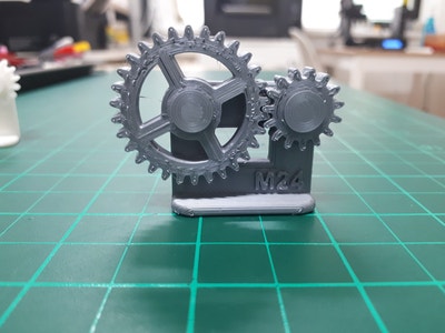 흰색 보스의 M3 구멍에 신중하게 한 방울씩 넣어 굳힐 때까지 잠시 기다려 주십시오.대신 분해할 때 어렵다는 거 아시죠? ^^플루서로 출력한 M24 스파 기어 모형내가 플루사(plusa) mk3s로 직접 출력한 M24 스파 기어 모형입니다.비슷한 종류의 부품별로 모아서 슬라이스 해서 색깔별로 나눠서 출력한 후 조립했어요.한 번에 출력한 M24 모형또 다른 출력 방법으로 이번 프로젝트에 참여하시는 분들에 따라 모든 부품을 한꺼번에 슬라이스해서 출력해봤습니다.한 번에 출력한 회색 M24 모형그레이 M24 모델의 경우 한 번에 출력하면 색상별로 나누어 하나씩 출력한 모델보다 출력 품질이 다소 떨어져 보입니다.한 번에 출력한 흰색 M24 모형조립한 흰색 M24 모형그래서 흰색으로 다시 도전해봤습니다. 회색 출력 품질이 저하된 경험을 살려 슬라이서 설정을 몇 가지 변경하여 다시 슬라이스하여 한 번에 출력했더니 회색 모델보다 많이 좋아진 상태입니다.그레이,화이트M24모델마지막으로 3d 프린팅 상생 프로젝트 시즌2의 첫 번째 M24 스파기어 모형 출력 프로젝트를 기념하기 위해 두 모형의 인증 사진을 남겨봅니다.[도서] ‘레고로 배우는 기계의 운동원리 152’에서 다루는 모형 중 M24 스파기어 모형을 3d 프린터로 직접 출력해 보세요.마지막으로 3d 프린팅 상생 프로젝트 시즌2의 첫 번째 M24 스파기어 모형 출력 프로젝트를 기념하기 위해 두 모형의 인증 사진을 남겨봅니다.[도서] ‘레고로 배우는 기계의 운동원리 152’에서 다루는 모형 중 M24 스파기어 모형을 3d 프린터로 직접 출력해 보세요.