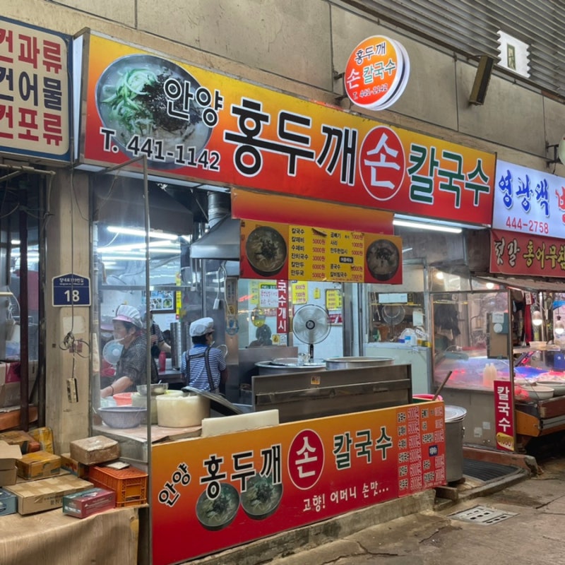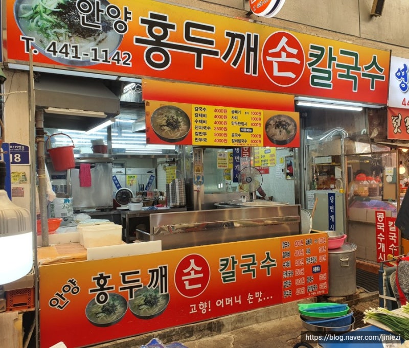 여기 홍두키손칼국수 2호점이요.안양중앙시장에 위치한 곳입니다. 전철역과 매우 가깝습니다.