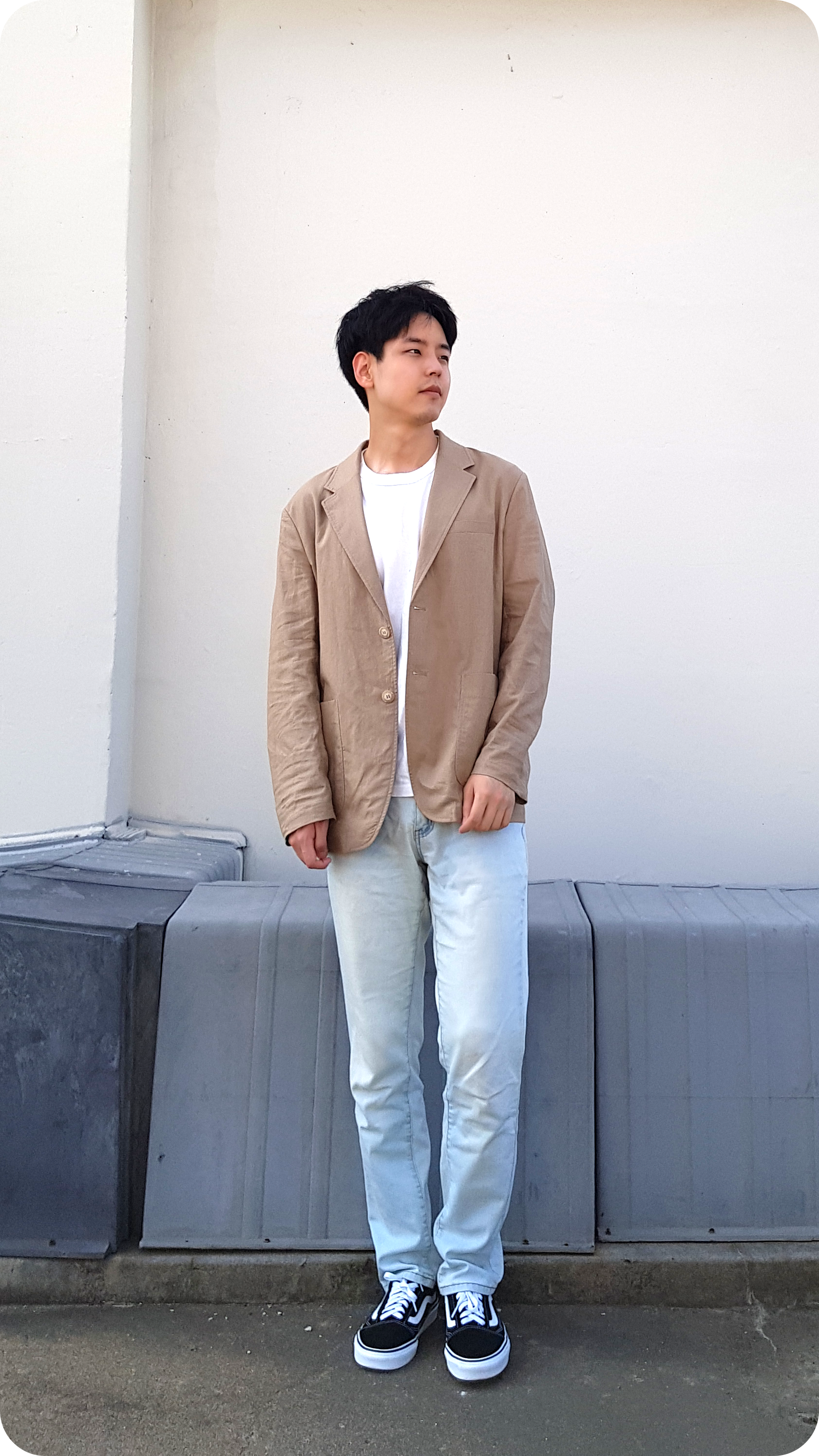 나는 남자 린넨 자켓 코디를 좀 댄디하게 즐겨봤어요.여름에 자켓을 입으면 더워 보일 수 있으니 소매를 걷어 올리시면 좋고 이너도 여름 느낌이 물씬 풍기는 스트라이프 패턴을 입으시면 좋아요.