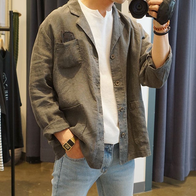 저번 여름 린넨 아우터 골라 입었는데 봄부터 쭉~여름까지 시원하게 입기 좋을거에요! 아무래도 하나 사면 오래 입으셔야 해서 활용도 높은 남성 린넨 자켓으로 추천드려요~!