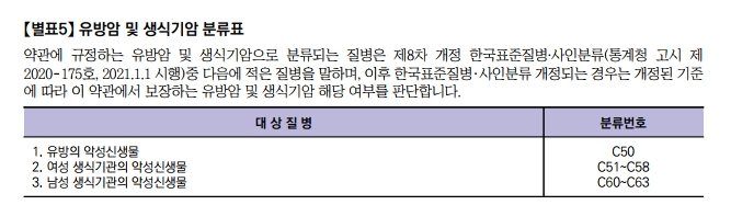 여성 암 보험 유방암 갑상선암의 분류를 확인해 주시기 바랍니다.
