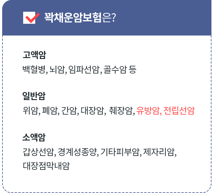 유방암 방광 자궁 전립선을 소액암이라고 합니다.일반암으로 분류가 되는데 말씀드린 것처럼 분리가 될 수도 있기 때문에 만약에 제안서 등을 받게 되면 이 부분을 확인해 보시기 바랍니다.