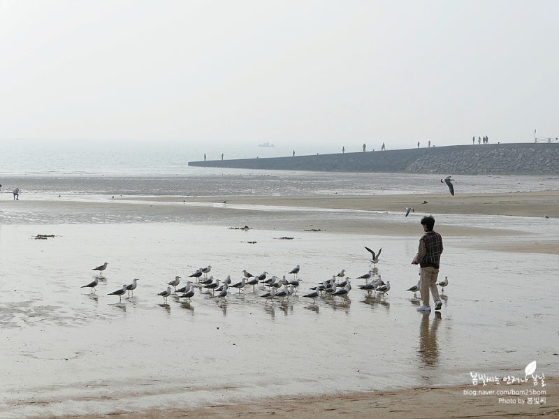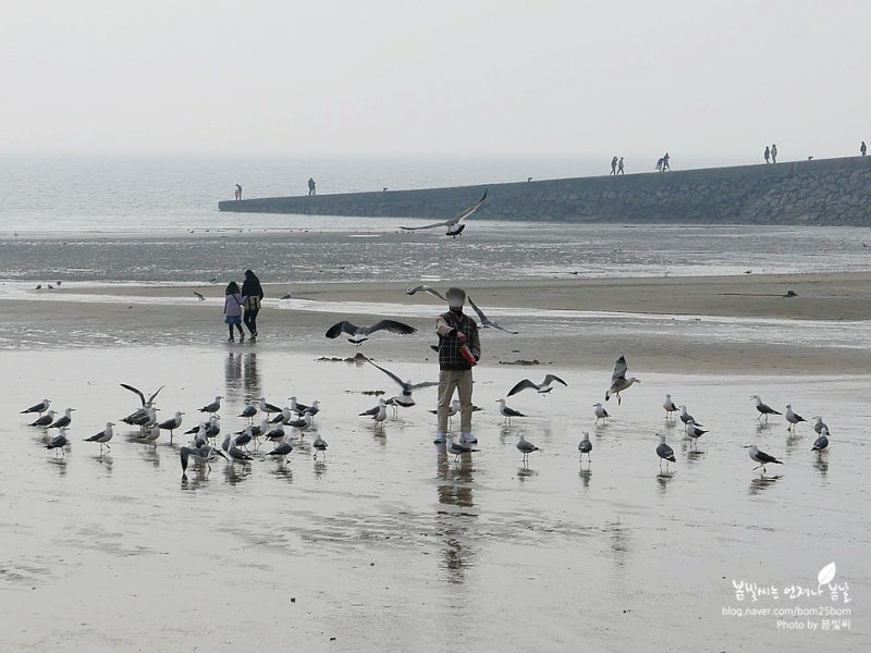 낮이 되면 간조로 물이 거의 빠져 흔들리는 바다를 볼 수 없지만 밤이 되면 만조로 물이 고여 폭죽이나 불꽃놀이를 즐길 수 있어 밤에 오는 것도 추천합니다. 낮에는 수면 위에 나타난 바닥 때문인지 갈매기가 많아 새우깡을 던지기에도 좋고 모래사장에 앉아 햇볕을 맞으며 멍들기에 좋다고 합니다. 곳곳에 어선도 볼 수 있지만 배를 타고 밖으로 나가 낚시도 즐길 수 있습니다. 여기서는 우럭, 가자미, 병어, 준치 등을 잡을 수 있다고 하는데 저도 예전에 인천에서 배낚시를 한 적이 있는데 우럭이 많이 잡히거든요.