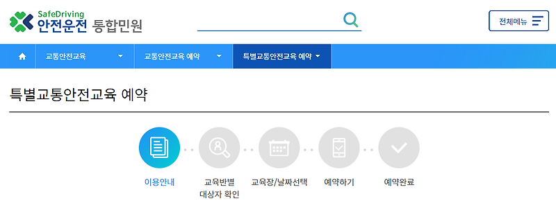 교육통지서에 교육반확인 도로교통공단 홈페이지(safedriving.or.kr) 사전예약 교육시간 20분 전까지 교육장에 도착하여 신분증, 교육수강료 제출 및 납부지정된 좌석에서 교육수강교육 이수증 출력(홈페이지)