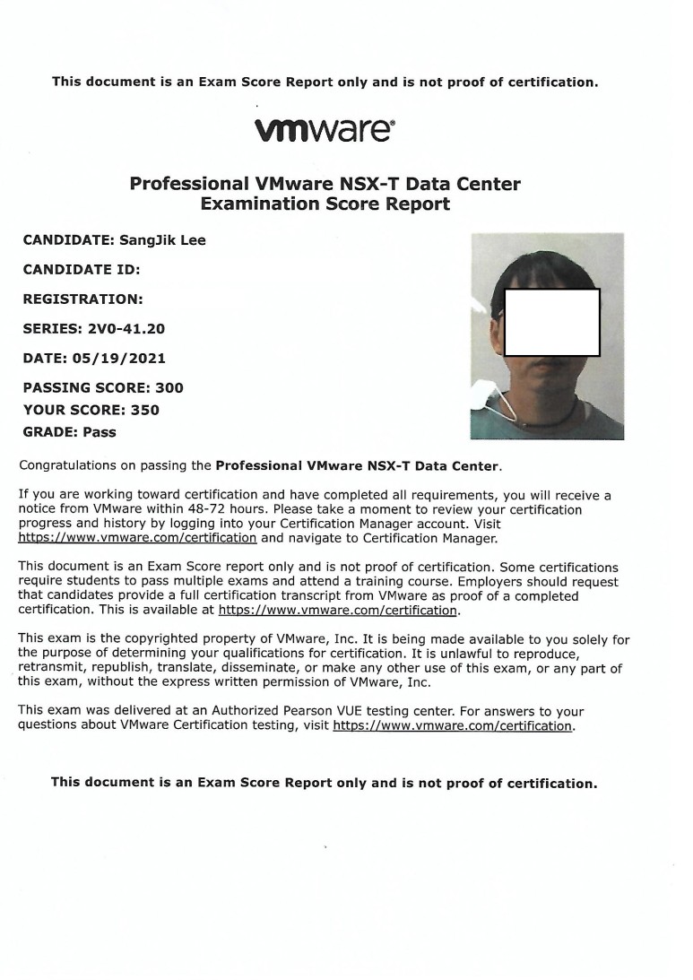 2021-05-19 오전 5시 기상!!! 아니 새벽 4시에 기상했다 오늘은, 전회 CCNA 취득에 의해, VMWARE사의 VCP-NV(Vmware Certified Prifessional -Network Virtualization 2021)의 자격시험 조건이 갖추어졌으며,