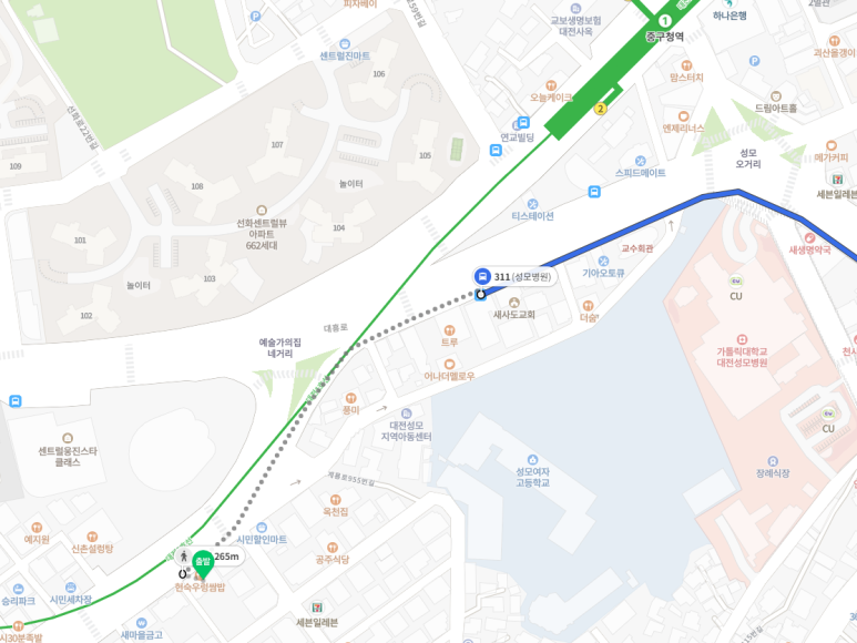 지하철을 출발해서 예상시간이 5~6분~ 역시 편차 없이 중구청역 도착!