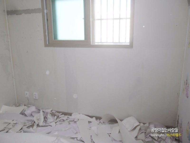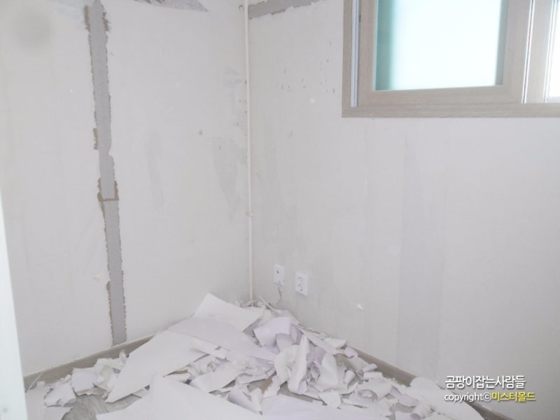 커튼레일이 있는 윗부분은 레일 뒤로 살짝 가릴 생각으로 적당히 잘라냈다. 안 보이는 곳이니까 그냥 빨리! www