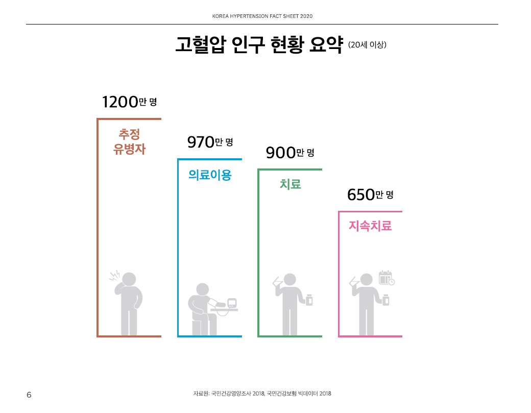 혈압이 높으면 동맥혈관 안쪽 얇은 내막이 손상돼 동맥경화성 심뇌혈관질환(심근경색, 뇌졸중 등)이 생길 수 있습니다. 혈압이 높다고 해서 단시간 내에 증상은 나타나지 않지만 적절한 관리가 이뤄지지 않으면 심근경색이나 뇌졸중 등 심각한 심뇌혈관 합병증이 유발될 수 있습니다. 고혈압이 세계 사망원인 기여도 1위인 만큼 주의가 필요한 기저질환입니다.