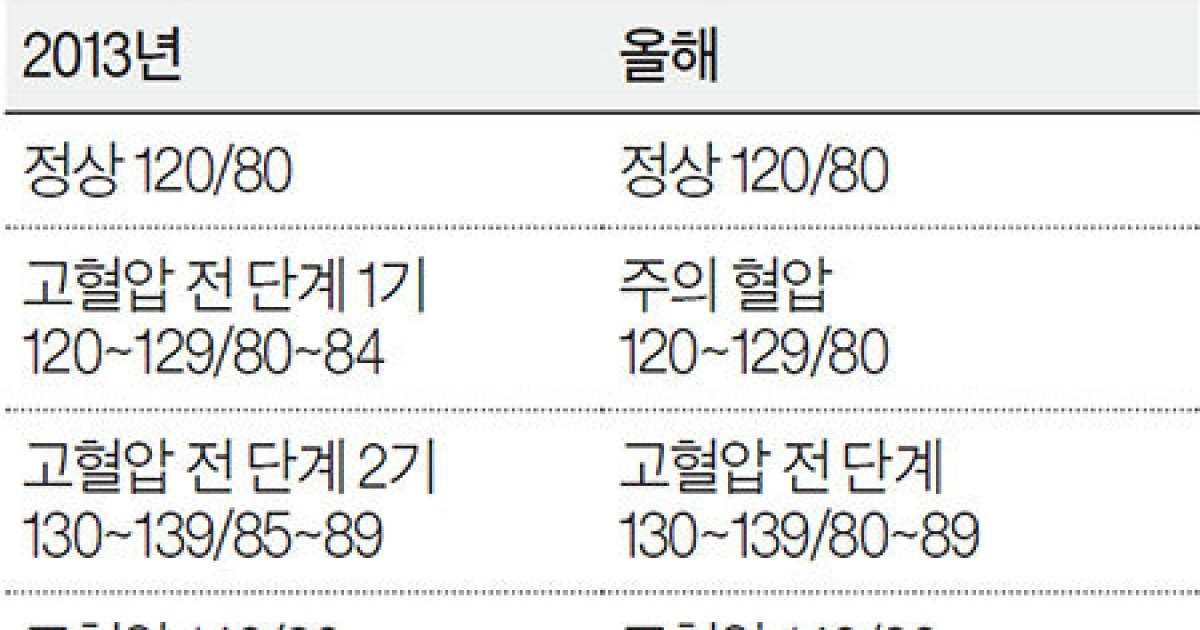 심뇌혈관질환 발생 위험이 가장 낮은 수치를 정상 혈압으로 보는데요. 보통 120/80mmHg 미만입니다. 진료실에서 안정된 상태로 측정하여 140/90mmHg 이상이면 고혈압으로 간주합니다만. SBP나 DBP 수치 중 어느 하나라도 정상 범위를 넘으면 해당 질환으로 판정됩니다.* 올바른 혈압 측정 방법으로 진행하더라도 가정에서 측정할 경우 진료실보다 낮게 나올 수 있습니다.* 가정에서는 135/85mmHg 이상인 경우를 의심판정 기준으로 볼 수 있습니다.