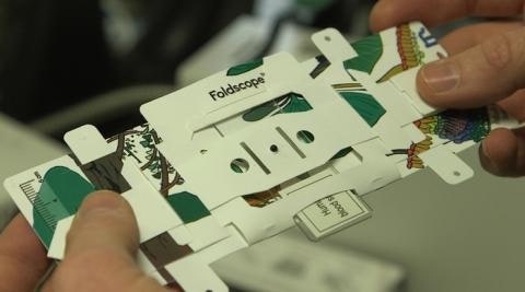 종이로 만든 현미경. 폴드 스코프를 만들어 봤다. 아프리카의 시골에서는 현미경을 셋업 하는 데 한계가 있어, 혈액 샘플을 확인하고 병을 진단하는 데 어려움이 많다. 이런 어려움을 해결하고 더 많은 사람에게 현대 의학의 혜택을 줄 수 있도록 고안된 것이 바로 이 폴드 스코프이다.얇은 가방 속에 현미경을 만드는 세트가 갖추고 있으며 가격은 1~2달러 정도 하는 것 같다. 한국에서는 1개 6천원 정도 되는 것 같아 과학 교구로 활용되고 있다. 이 폴드 스코프는 스탠퍼드 대학(Stanford University)의 교수 마누·프라카시(Manu Prakash)의 발명품이다. 좋은 기회가 있고 이 교수의 강연도 들어 폴드 스코프를 만들어 볼 수 있었다. 강연을 듣고 보면 이 사람이 적정 기술에 정말 열정을 갖고 연구하는 것이 느껴졌다. 보통 세미나를 하면 본인의 연구 주제를 깊이 다루는 경우가 많아 제가 잘 아는 분야가 아니면 이해하기 어려울 때가 많다. 물론 이것은 나의 능력 부족이기도 하다.마누·프라카시 교수는 넓은 주제를 폭넓게 다루면서 기술의 원리보다는 자신이 왜 이 연구에 관심이 큰지 그리고 왜 이 기술이 필요한지를 중점적으로 설명하셔서 잘 모르는 분야임에도 불구하고 즐겁게 들을 수 있었다. 유머도 있고 농담도 말하기 퀴즈도 도중에 내놓기도 했다.