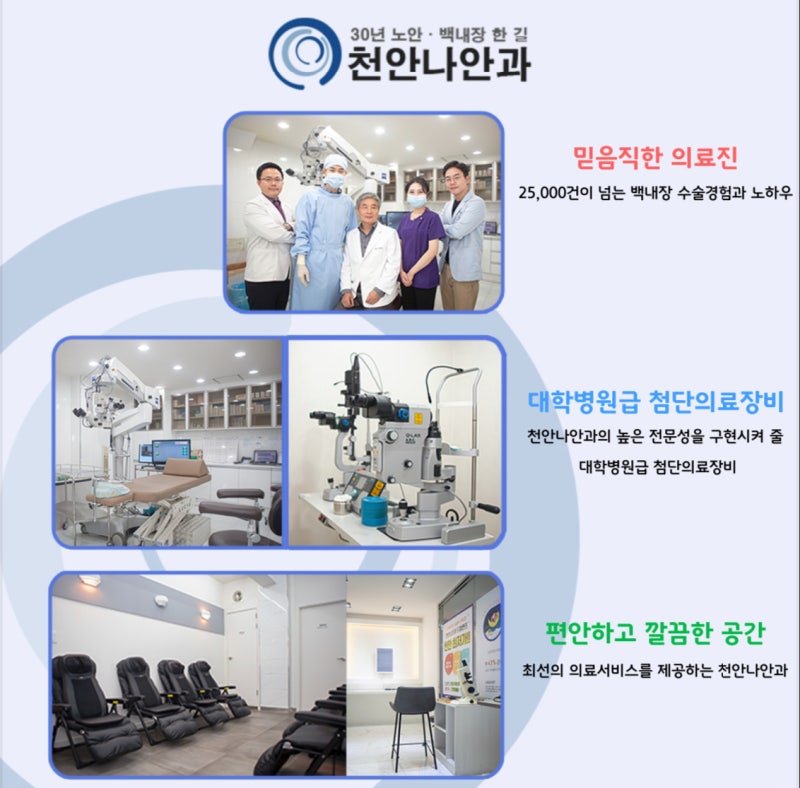 *** 병원 뉴스가 궁금하다면? 아래클릭** 이전 14차 정지 천안라안과 신속한 상담, 항상 고객님 입장에서 최대한의 편의를 위해 노력하는 천안라안과가 되겠습니다. – 개인정보 수집 및 이용목적에 동의합니다. 상담예약 빠른상담 네이버 블로그 돋보기 노안 돋보기 없는 일상생활 눈의 특성에 맞는 맞춤 노안수술을 더 보는 백내장 흐린 시야를 100세까지 선명하게 30년 백내장 한길 천안 나안과 더 보는 노안 백내장 수술 후기 생생한 수술 체험 리뷰를 알려드립니다. 더보기 대학병원급 첨단의료장비 천안라안과 높은 전문성을 구현시켜주는 대학병원급 첨단의료장비 더보기 진료시간안내 041.56…www.안과.net