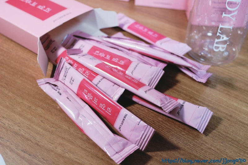 스틱 하나에 칼로리는 4칼로리라서 부담없이 마실 수 있는 카페인이 없어서 외출시에도 이렇게 바디랩병에 넣어서 다니는~