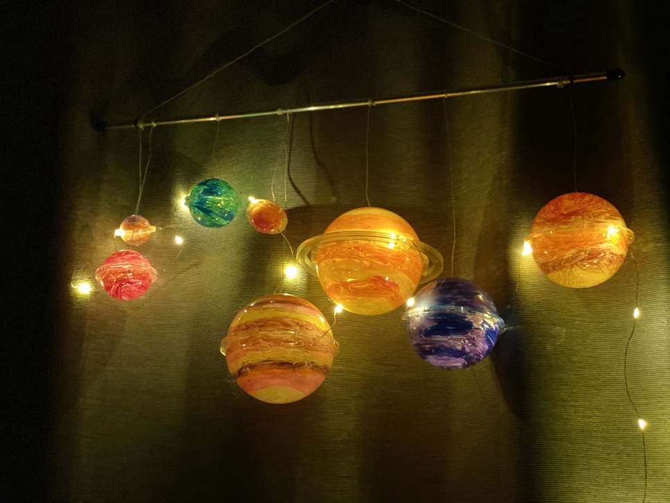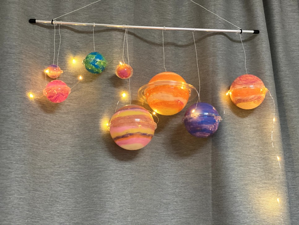 아이가 세계와 우주를 알고 싶어하면서 별자리가 표현된 지구본을 사줘야 되나? 싶었는데 행성 모빌로 선택한 건 정말 잘한 것 같아요.스스로 꾸민 것이라 애착을 느끼고 자기 전에 행성 모빌을 보면서 상상력과 창의력을 키워나갔죠.
