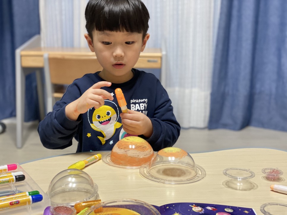 유치원 수업 중에 누리과정에 ‘지구와 우주’도 포함되어 있었는데, 이걸 계기로 엄마 도장놀이를 해드리고 싶다는 생각이 들었습니다.찾던 중 행성 모빌 DIY 키트가 있다는 사실을 알게 되어 만들어 보니 대만족!