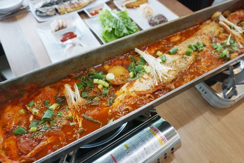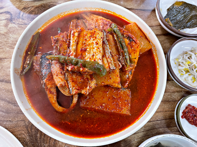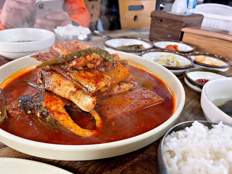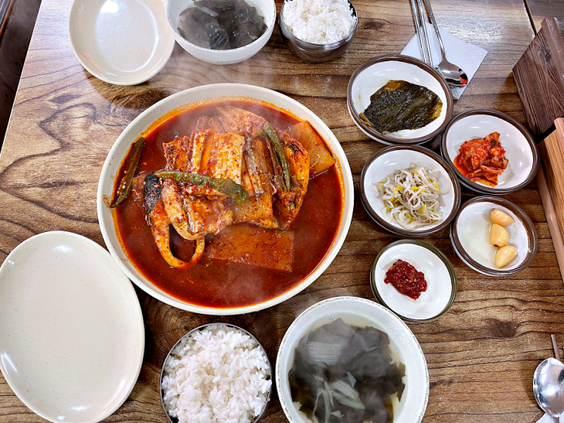 저희 일행은 성산갈치 맛집을 찾았는데 오픈한지 10살도 안되서 지역주민들이 관광객들을 상대로 넓게 오픈한 자리에서 대여버스 기사님을 통해 소개를 받았는데 홀도 넓고 깨끗해서 많은 관광객을 소화할 수 있을 정도로 성산갈치 맛집을 자랑할 정도로 넓었습니다.이곳의 특색은 다른 갈치조림과 거의 같다고 생각되지만, 각별한 것은 출입구에 두꺼비 두 마리가 우리를 반기는 모습을 볼 수 있을 것입니다.