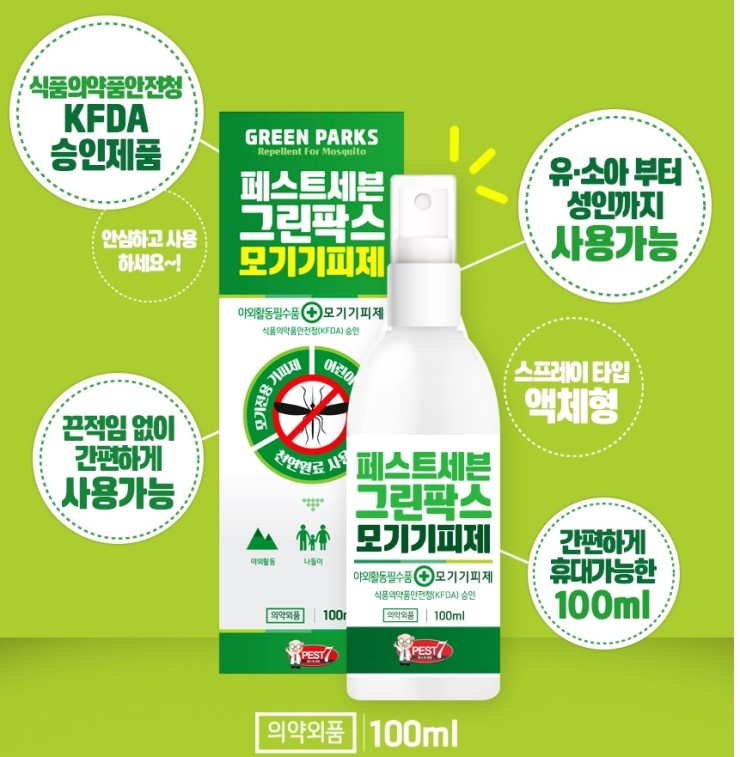 휴대용 모기장이 다 거기 아니야? 이런 생각도 했는데 이번에 페스토세븐을 써보면서 그 생각이 좀 바뀐 것 같아요. ㅎㅎ 뿌리기만 하면 바로 효과가 있는 기피성분 UP 모기/진드기 기피제, 그린팍스 확실한 모기&진드기 기피효과를 원하시는 분들을 위해 언제 어디서나 강력!! 효과가 있습니다.식약처 허가를 받은 의약외품이기 때문에 어린이부터 어른까지 사용할 수 있는 제품