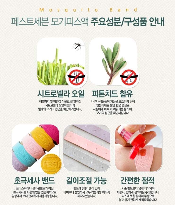 특히 여름에 모기에 물려 부어오르고 가려운 것을 싫어하는 유아 착용 시 손목보다는 발목에 맞춰 착용하는 것을 권장한다고 합니다.