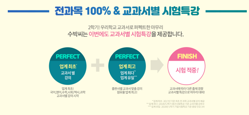 시험준비 콘텐츠에는 시험특강 외에도 교과서별 서술형 특강, 올백시험 특강, 7일 마무리, 전략, IT북으로 2학기 기말고사 준비를 위한 강의가 다양하고 자녀 수준에 맞는 강의를 선택해 들을 수 있어 좋습니다.