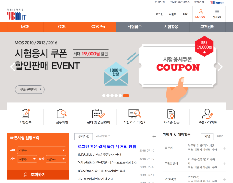 취업 사이트를 보면 외국계 회사나 공기업의 영업지원, 경영지원 등의 업무에서 우대사항으로 보기도 합니다.mos의 단점은 응시료가 비싸고 컴파일에 비해 공신력이 떨어져 스펙을 쌓기에는 아쉬운 부분이 있다는 점입니다.시험을 도는 YBMIT에서 여름 이벤트를 진행합니다.
